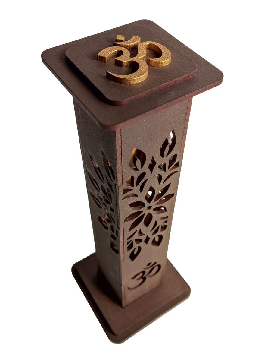 Incensário Torre OM na cor marrom feito em MDF, uma linda peça de decoração e evita sujar o seu móvel com cinzas.